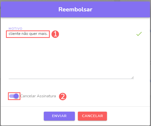 Para evitar novas cobranças ao cliente, recomendamos cancelar imediatamente a assinatura. Essa operação pode ser realizada durante o reembolso do pagamento ou diretamente na opção cancelar assinatura.