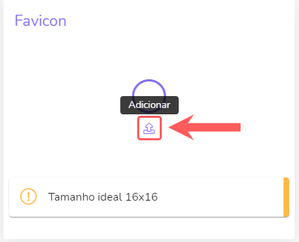 3 - Em Favicon, clique no botão adicionar e selecione a imagem desejada.