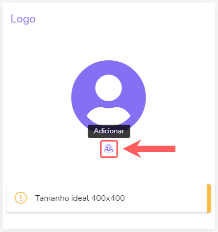 3 - Em Logo, clique no botão adicionar e selecione a imagem do seu logotipo.