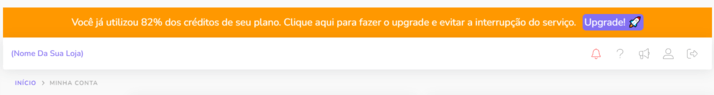 Será exibido a informação dos créditos do seu plano, quando ultrapassarem os 80% de utilização do mês.