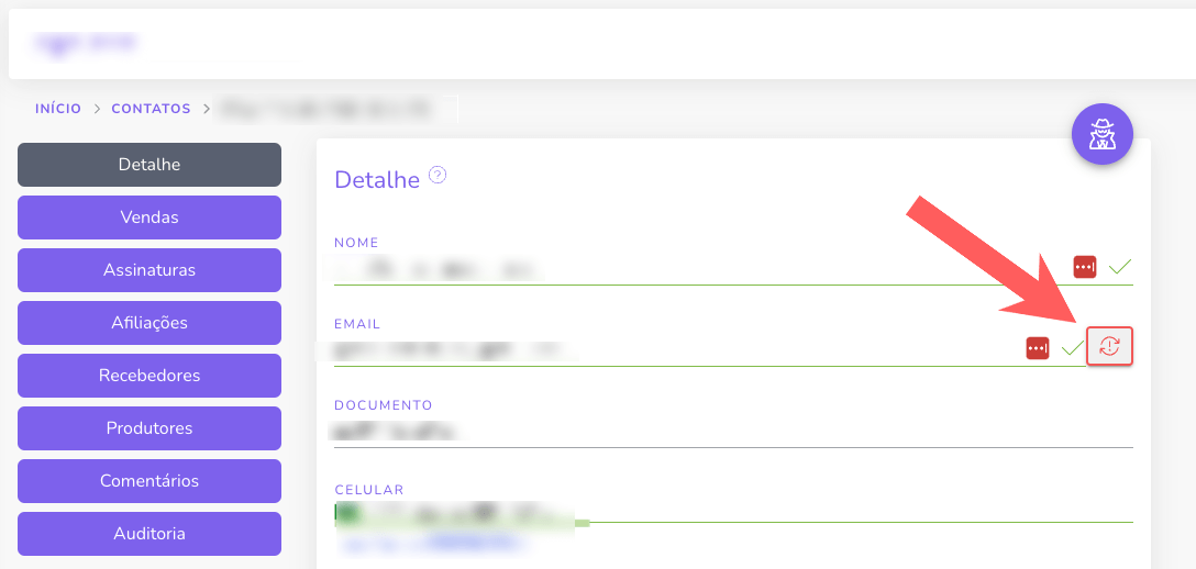 Pronto! Os dados pessoais do contato são imediatamente substituídos por valores simbólicos e sem qualquer valor associado ao conteúdo original - apenas país e estado de residência permanecem com os valores originais. Vendas, assinaturas e afiliações associadas ao contato permanecem intactas.