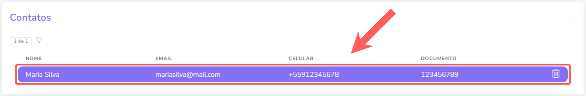 2 - Na listagem exibida, selecione o Contato que pretende atualizar o cadastro de recebedor.