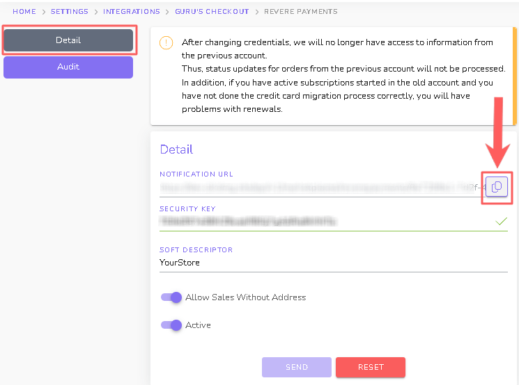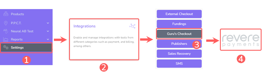 2 - Access Settings > Integrations > Checkout Guru > Revere Payments.