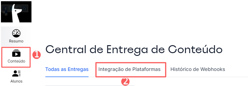 2 - No menu lateral acesse Conteúdo e, em seguida, Integração de Plataformas.