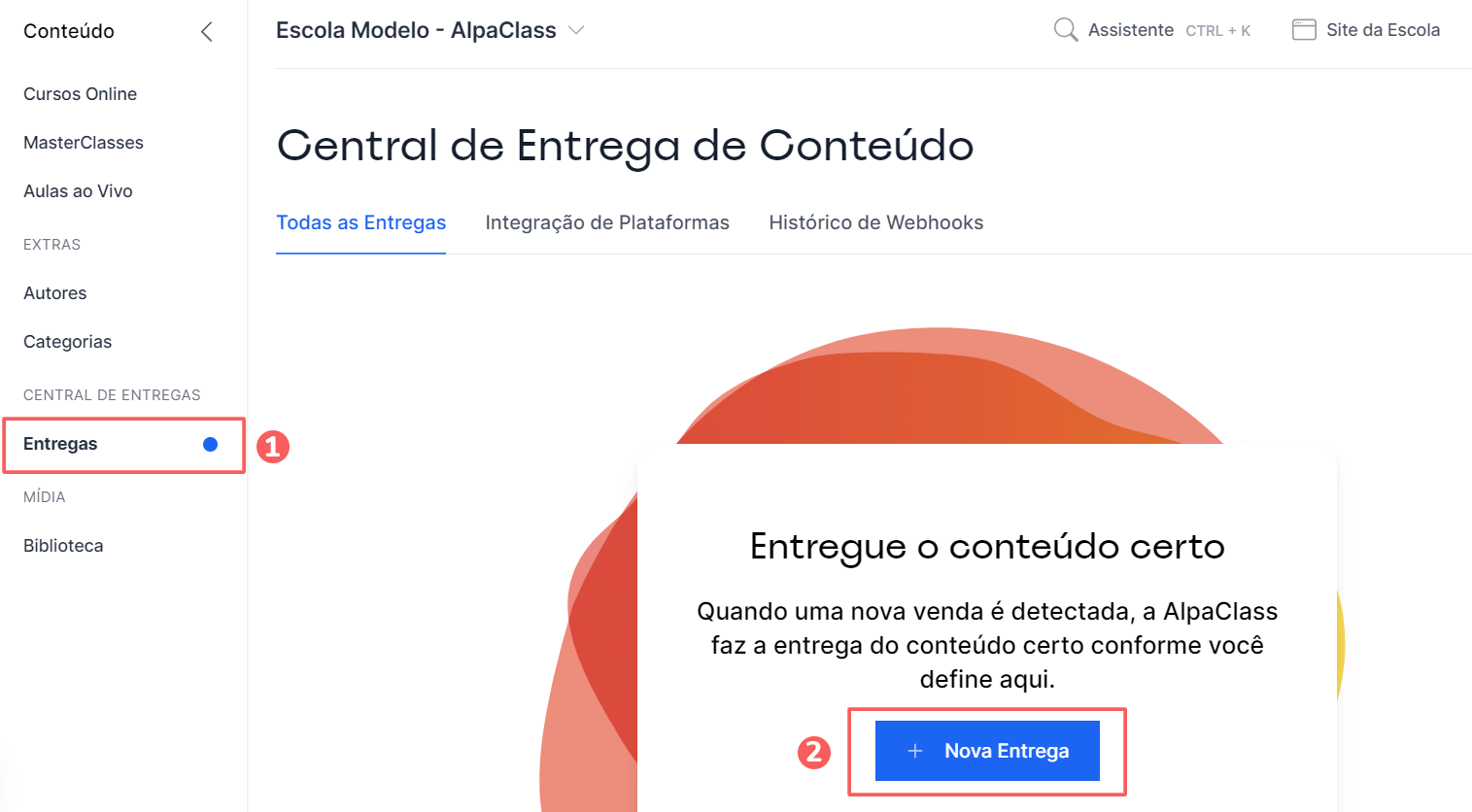 3 - Clique em Entregas e, em seguida, em Nova Entrega.