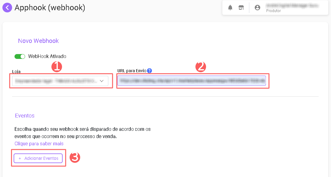 7 - Em seguida, clique em Novo Webhook.