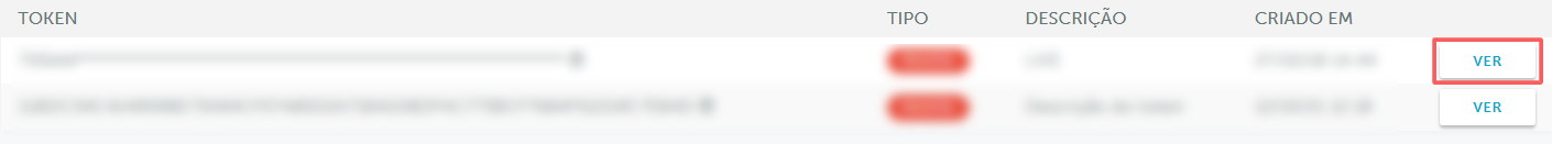 7 - Localize o token que acabou de gerar e clique em Ver.