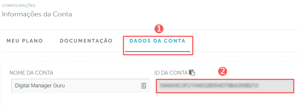 3 - Na aba Dados da Conta, localize e armazene o valor exibido em ID da Conta.