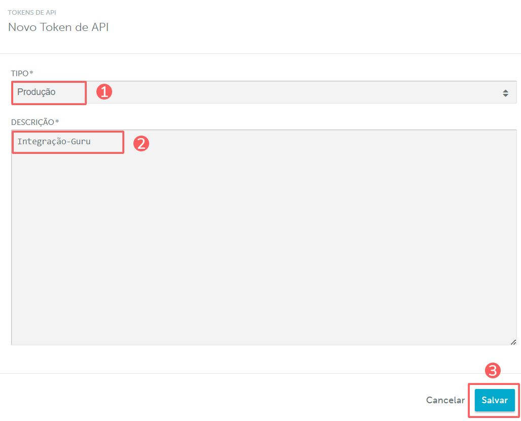 Descrição: descrição para o Token - Sugestão: Integração-Guru;