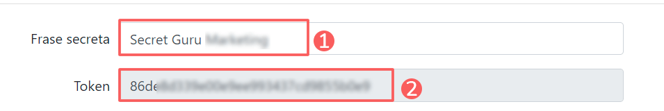 3 - Crie Sua Frase Secreta (Secret Phrase). Em seguida, copie e armazene a Frase Secreta e o Token gerado.