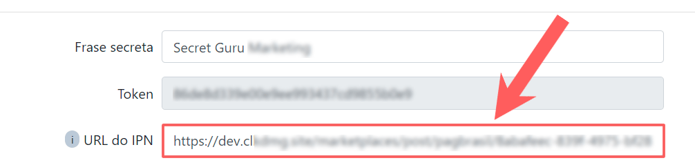 Nessa etapa, você deve realizar o cadastro da URL de Notificação gerada pela Guru na sua conta PagBrasil.