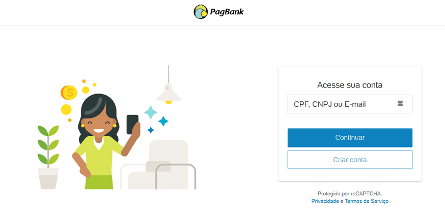 4 - Acesse sua conta PagBank com seu usuário e senha.