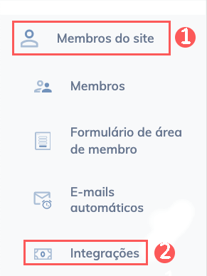 4 - No menu lateral, clique em Membros do site, e em seguida Integrações.