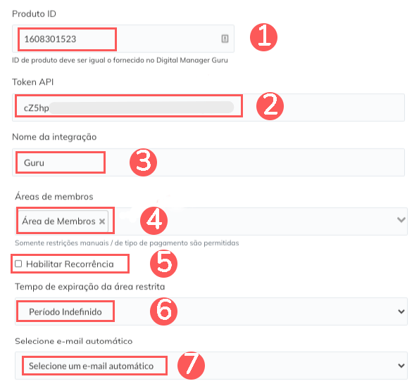 Nesse passo, você deve copiar o código do produto na Guru e informar na Builderall.