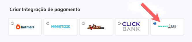 6 - Selecione a integração com a Digital Manager Guru.
