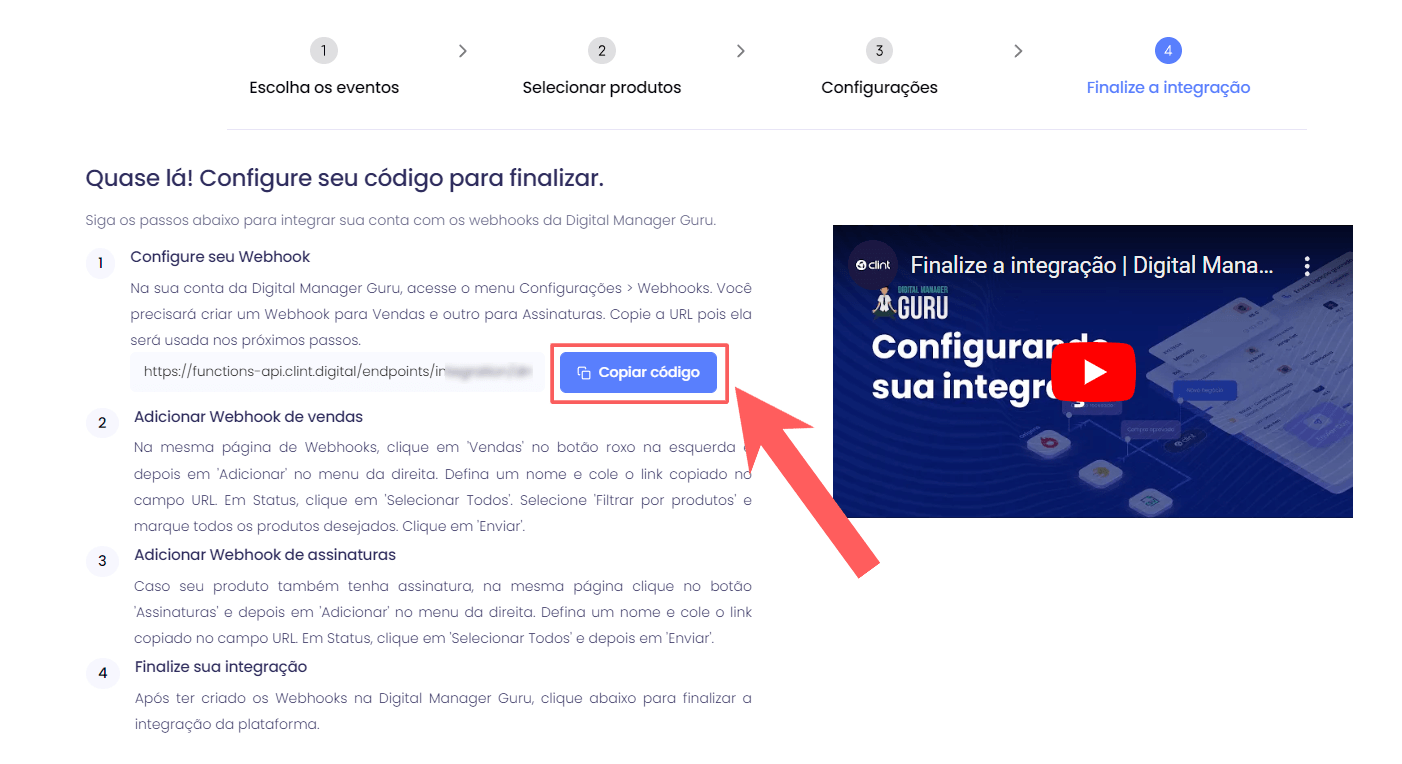 Para ativar a integração com a Clint, você deve realizar os 4 passos a seguir.