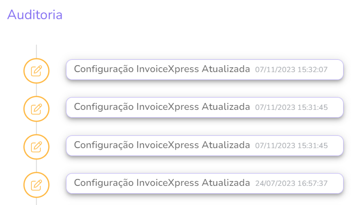 Você pode desativar a integração com InvoiceXpress e também consultar o histórico de alterações realizadas (auditoria).