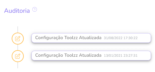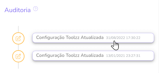 Você pode desativar a integração com o Toolzz e também consultar o histórico de alterações realizadas (Auditoria).