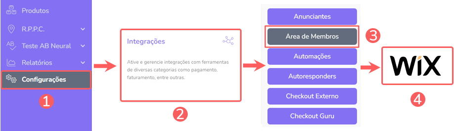 1 - Acesse Configurações > Integrações > Área de membros > Wix