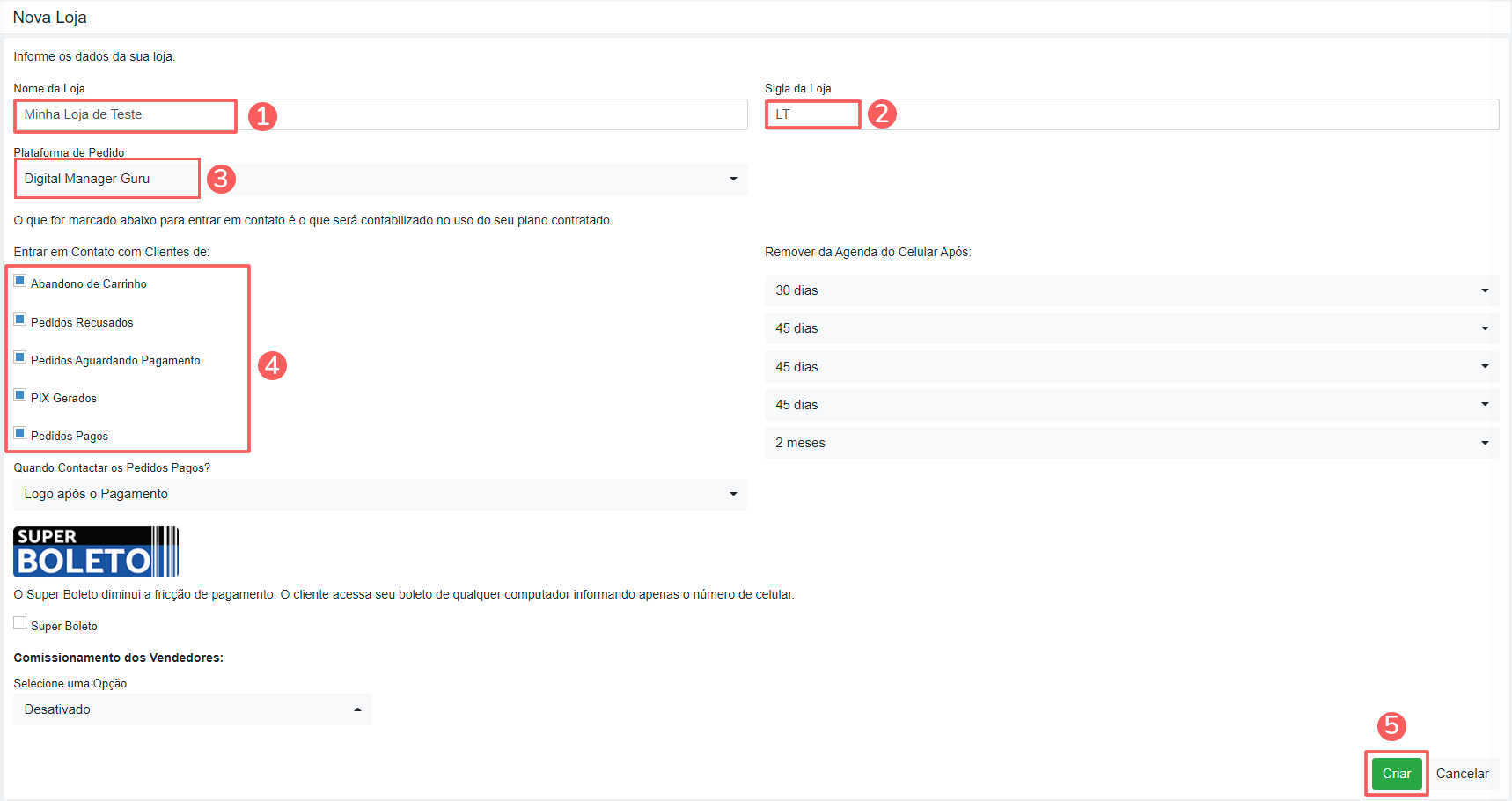 Sigla da loja: para fazer uma identificação curta da sua loja. Ex.: SLOJA;