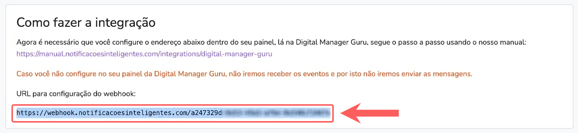 6 – Na seção Como fazer a integração, copie o URL para configuração do webhook.