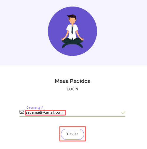 Para acessar a área Meus Pedidos deverá informar o e-mail associado à compra, e em seguida acessar sua caixa de e-mail para realizar o acesso através da mensagem recebida.