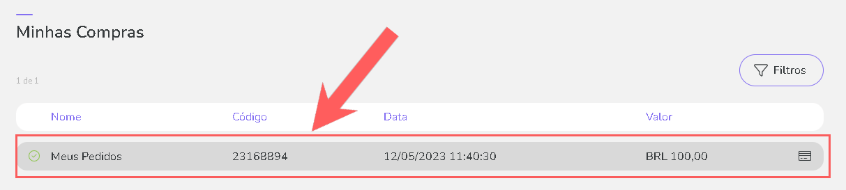 4 - Uma lista com as suas compras será exibida. Localize e clique na compra desejada.