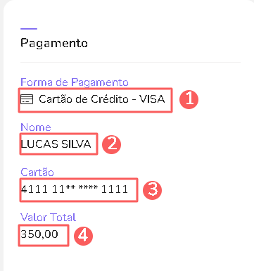 Cartão: 6 primeiros dígitos do cartão usado no pagamento e 4 últimos dígitos do cartão usado no pagamento.