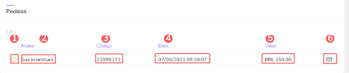 Você pode visualizar uma as informações das suas assinaturas, como o detalhe, o ciclo, os dados do pagamento, suas faturas e os detalhe das faturas e as informações do seu pedido.