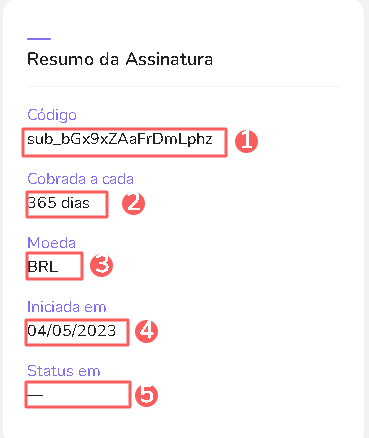 Status: exibe o estado atual da assinatura- será exibido um dos status possíveis da assinatura;