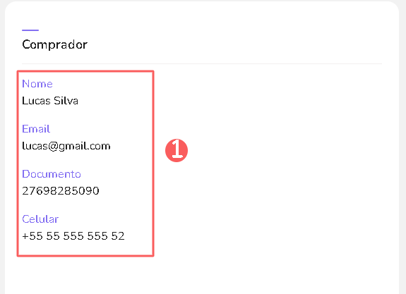 Comprador: nome, e-mail, nº de telefone e documento que informou no pedido;