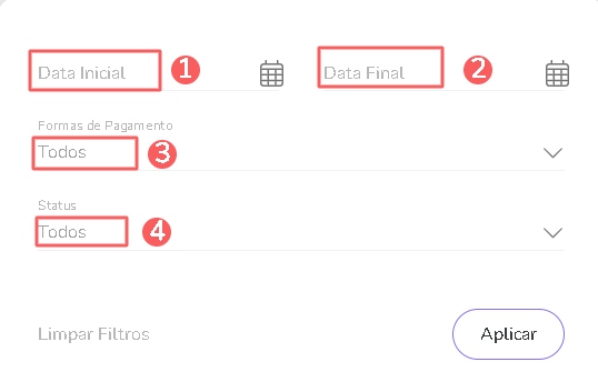 Formas de Pagamento: busca pedidos com a(s) forma(s) de pagamento selecionada(s).