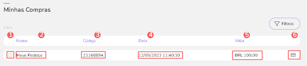 Os seus pedidos feitos através do Checkout Guru são listados automaticamente na área Meus Pedidos, seção Pedidos.