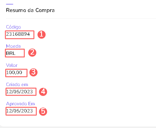 Criado em: data em que a compra foi realizada;