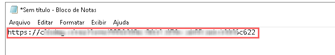 3 - Abra um Editor de texto à sua escolha (Ex. bloco de notas) e cole o URL copiado do passo 1 item 6.