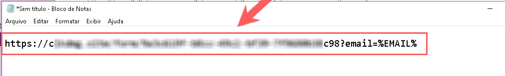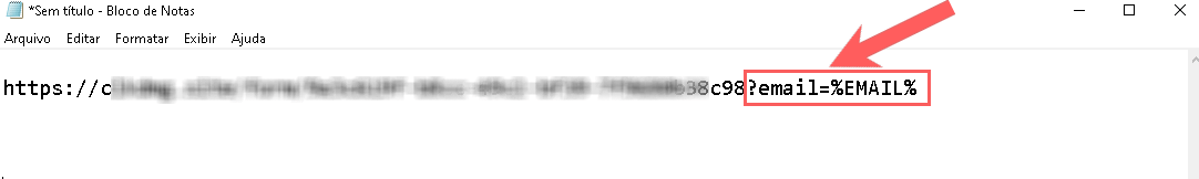 4 - Em seguida, no editor de texto, insira um “?” no final da URL, e informe email e insira “=”, em seguida cole o Valor do E-mail copiado do passo 2 item 2.