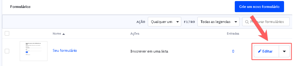 4 - Localize o Formulário que deseja conectar e clique em Editar.