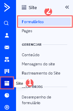3 - No menu lateral esquerdo, clique em Site, e em seguida em Formulários.