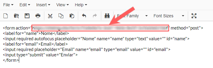 5 - Cole o Código do Formulário em um Editor de Texto à sua escolha (Ex. bloco de notas).