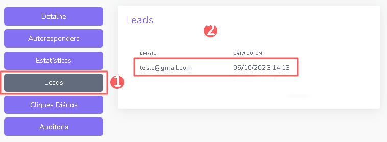5 - Em seguida, em Leads verifique se o E-mail informado no teste está na lista de Leads.